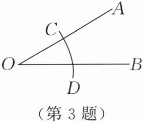 (2)以______为圆心,以______为半径画弧,交 $ OA $ 于点 $ C $,交 $ OB $ 于点 $ D $;