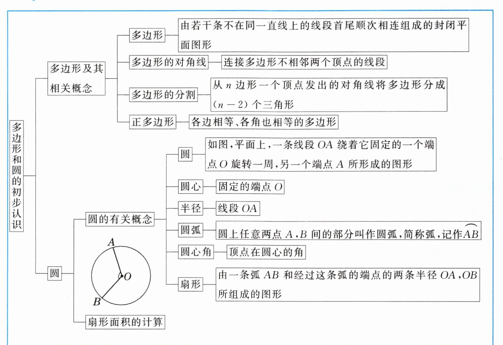 扇形:由一条弧 $ AB $ 和经过这条弧的端点的两条半径 $ OA $,$ OB $ 所组成的图形