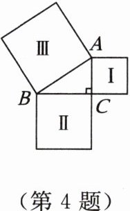 4. 如图,分别以$Rt\triangle ABC$的三边为边向外作三个正方形。若正方形Ⅰ、正方形Ⅱ的面积分别为$36$,$64$,则正方形Ⅲ的面积为