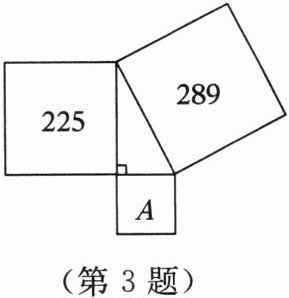3. 如图,已知两个正方形的面积分别为$225$,$289$,则字母$A$所代表的正方形的面积为(