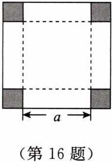 16. 【综合与实践】如图,在一张面积为$30cm^{2}$的大正方形卡纸上,剪去四个面积为$2cm^{2}$的小正方形(阴影部分),用以制作一个无盖的长方体纸盒,请你尝试用计算器确定该长方体纸盒的底面边长$a$的大小。(结果精确到百分位)