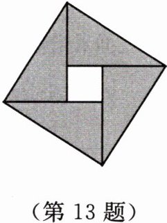 13. 【数学文化】2002年8月,国际数学家大会在北京举行,这是21世纪全世界数学家的一次大聚会,这次大会会标的主要图案就取材于我国古代数学家赵爽用来证明勾股定理的弦图(如图所示),这充分肯定了我国数学的成就,也弘扬了我国古代的数学文化。弦图是由四个相同的直角三角形与中间的小正方形拼成的一个大正方形。若大正方形的面积是$13$,小正方形的面积是$1$,直角三角形中较短的直角边的长度为$a$,较长的直角边的长度为$b$,请求出$(a + b)^{2}$的值。