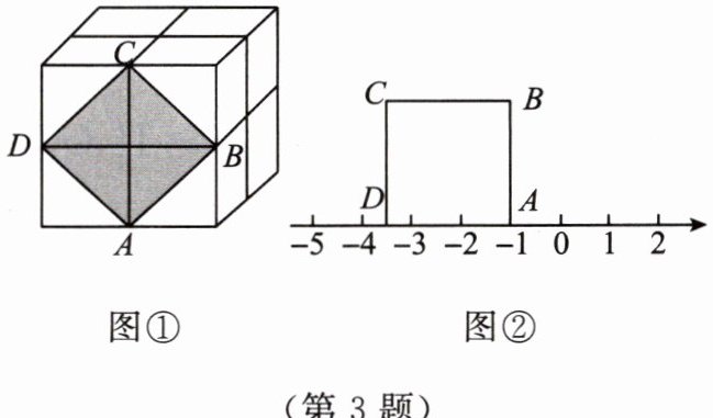 (3) 把正方形$ABCD$放到数轴上,如图②,使得点$A与-1$对应的点重合,那么点$D$在数轴上表示的数为