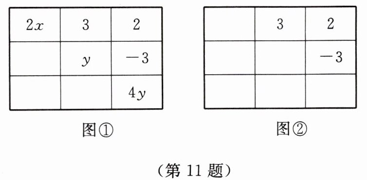 11. 如图,在$3×3$的网格内,填写了一些代数式。