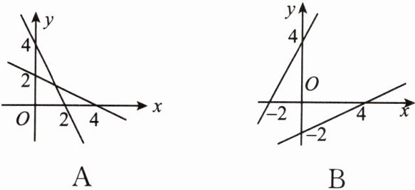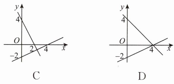 2. 若一次函数 $ y = 3x + 6 $ 与 $ y = 2x - 4 $ 的图象的交点坐标为 $ (a,b) $,则解是 $ \begin{cases} x = a, \\ y = b \end{cases} $ 的方程组是(