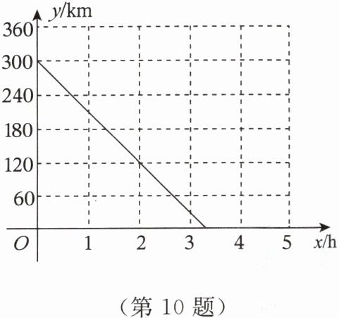 10. $A,B$两座城市之间有一条高速公路。甲、乙两辆汽车同时分别从这条路两端的入口处驶入,并始终在高速公路上正常行驶。甲车驶往$B$城,乙车驶往$A$城,甲车在行驶过程中速度始终不变。甲车距$B城高速公路入口处的距离y(km)与行驶时间x(h)$之间的关系如图所示。