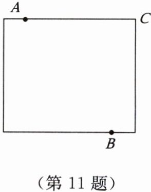 11. 【数学应用】为进一步打造宜居城市,某区拟在新竣工的矩形广场的内部修建一个音乐喷泉,要求音乐喷泉$P到广场的两个人口A$,$B$的距离相等,且到广场管理处$C的距离等于A和B$之间的距离的一半,$A$,$B$,$C$的位置如图所示。请利用尺规作出音乐喷泉$P$的位置。并说明理由。