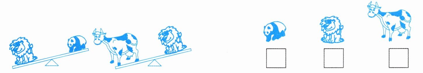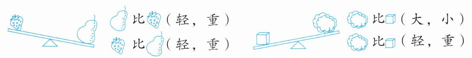 3. 在最重的下面画“√”,最轻的下面画“○”。