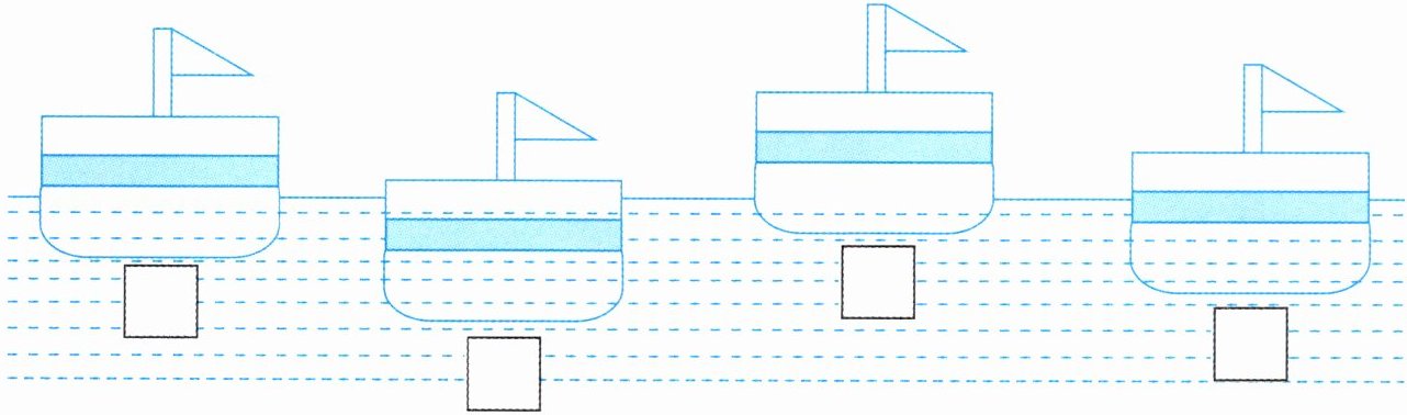 5. 哪艘船上的货物最重?画“√”;哪艘船上的货物最轻?画“×”。