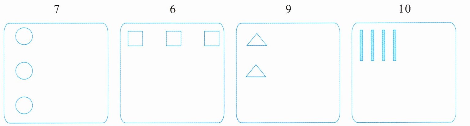 本题可根据每个图形所对应的数字,结合已画出的图形数量,计算出缺少的图形数量,进而补全图形。