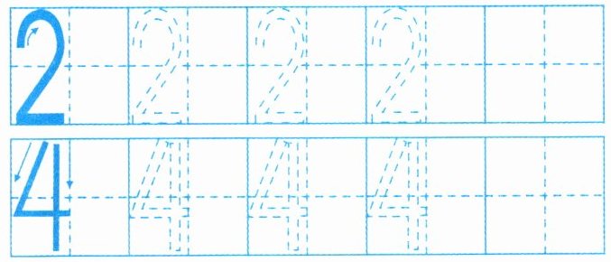 “4”从上线当中起,向左斜线到下格,碰左线后再横过去,向右碰线;
