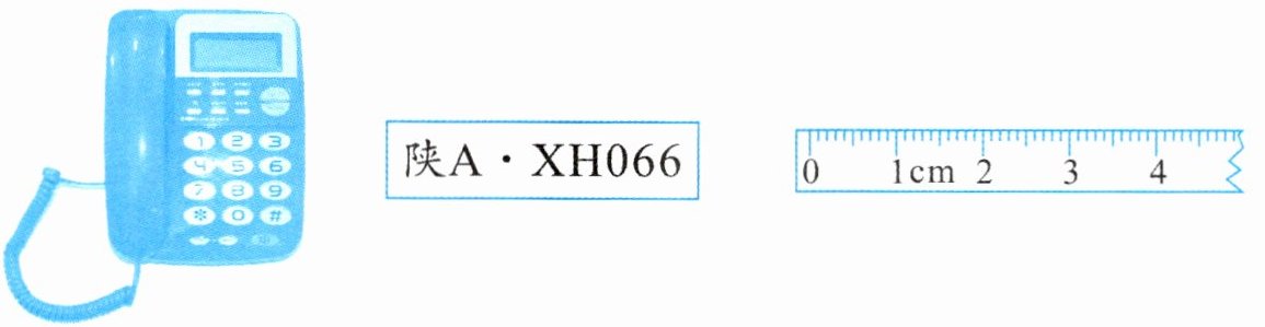 (圈出电话按键上的“0”、车牌号“XH066”中的“0”、直尺上的“0”)
