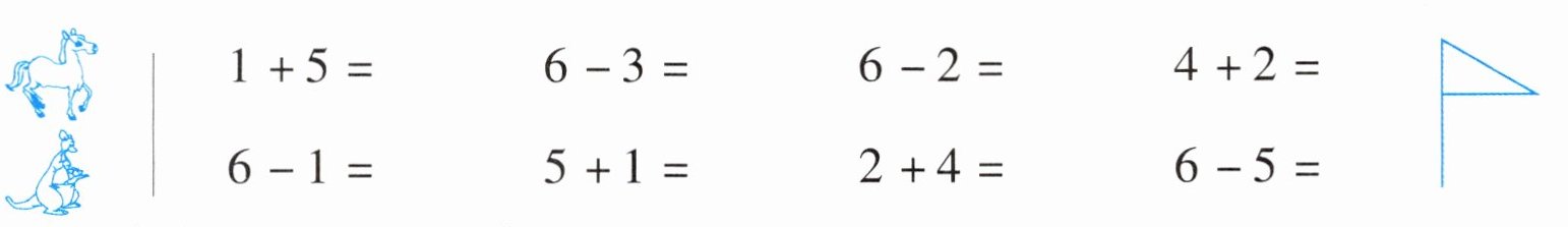 $2 + □ = 6 \quad 6 - □ = 4 \quad 6 + □ = 6 \quad 6 - □ = 1 \quad 6 - □ = 3$