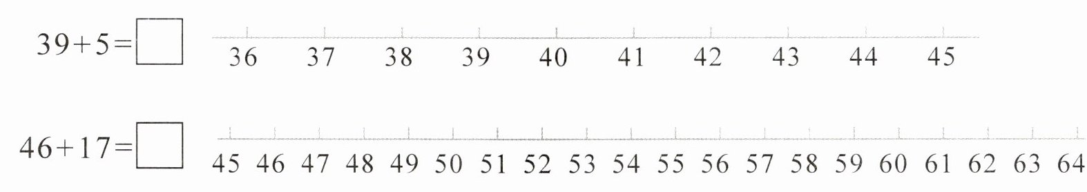 所以$39 + 5 = 44$,$46 + 17 = 63$。