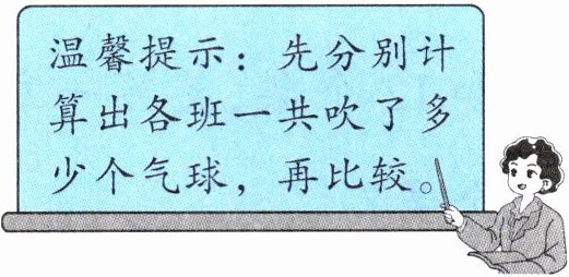 4. 同学们一起布置教室,二(1)班男生吹了23个气球,女生吹了18个气球,二(2)班男生吹了29个气球,女生吹了13个气球。算一算,哪个班吹的气球多?