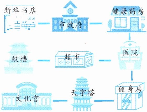 (3) 淘气想从新华书店去健身房应该怎么走?请你为他画出简单的路线图。