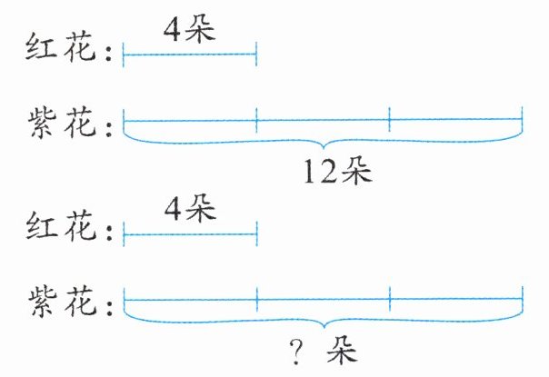 后面人数是前面的$4$倍,后面人数为$3×4 = 12$人,即$○○○○○○○○○○○○$
