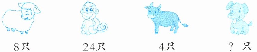 解:求羊的只数是牛的几倍,就是求$8$是$4$的几倍,用除法计算,公式为$8÷4 = 2$。