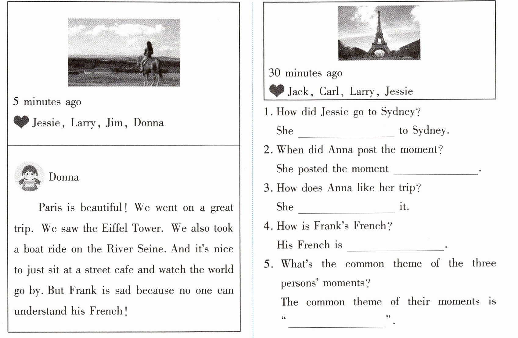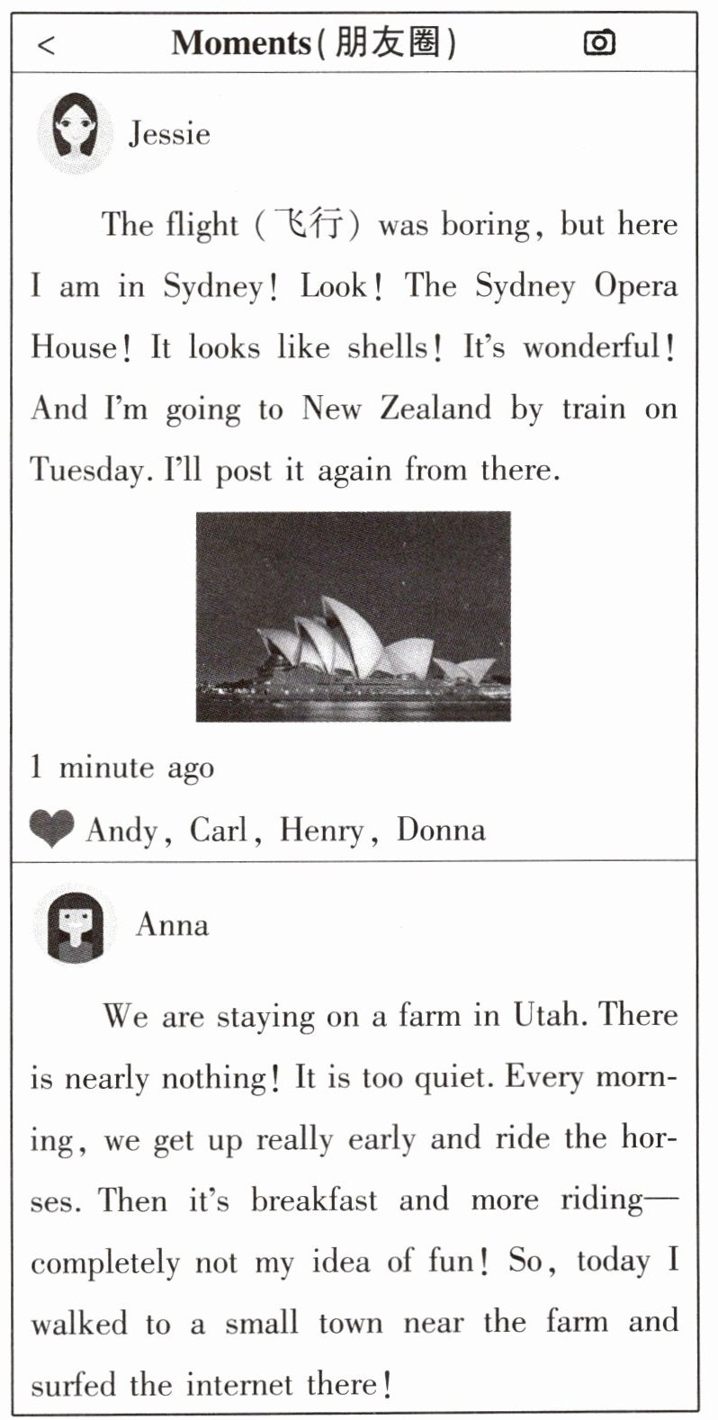 The ____8____ was wonderful there. Every morning when I woke up, I could see the sun was shining (照耀) and the sky was blue. It rained only once, but the sun came out soon.