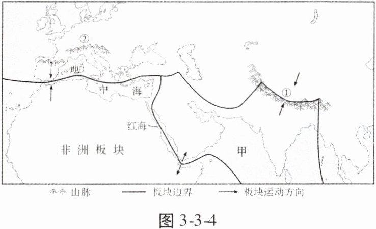 (2024·黑龙江中考)读世界局部板块运动示意图(图3-3-4),完成5、6题。