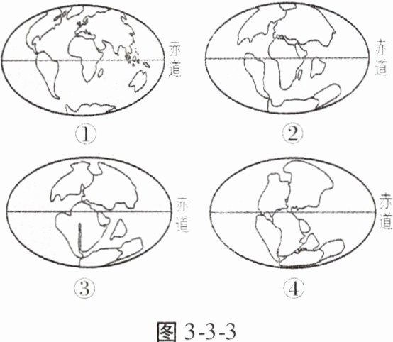 3. 根据这一假说,图3-3-3中的四幅大陆漂移示意图,按时间先后顺序排列正确的是( )