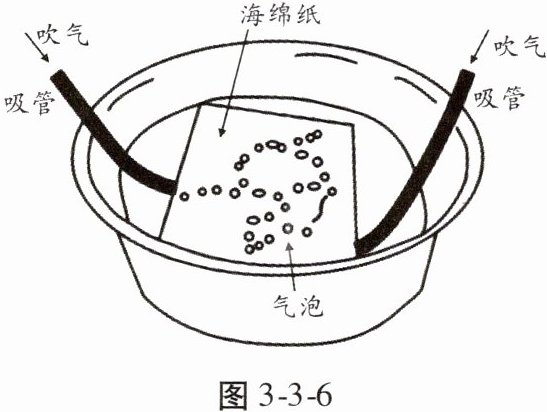 【核心素养·地理实践力】地理课堂上,同学们利用盛满水的盆、海绵纸、吸管等材料,设计了模拟地球表层运动的实验(图3-3-6)。实验中发现,当将吸管插入水中朝盆底吹气时,大量气泡出现在海绵纸交界处。读图完成8、9题。
