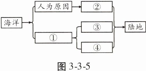 7. (2024·咸阳阶段练)【思维导图】成语“沧海桑田”原意是指海陆变迁,早在古代人们就察觉到海洋和陆地不断运动变化的现象。在图3-3-5所示的海陆变迁思维导图中,数码所代表的含义正确的是( )