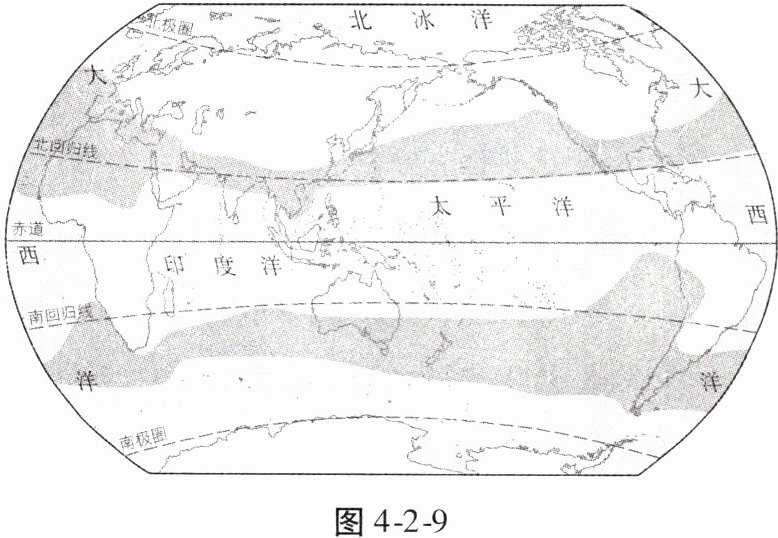 (2024·汉中期末)图4-2-9示意世界1月平均气温10—22℃适宜避寒区(图中灰色区域)范围。读图完成11、12题。
