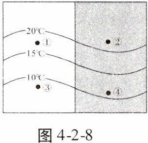 读某地等温线图(图4-2-8),完成9、10题。