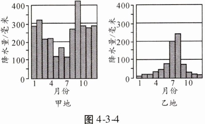 3. 下列关于图4-3-4中北半球甲、乙两地降水季节变化的叙述,正确的是( )