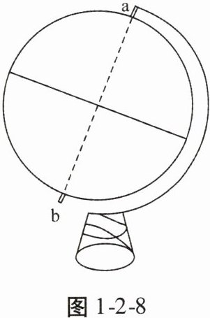 某同学尝试用乒乓球和铁丝制作简易地球仪。图1-2-8为该同学制作的地球仪,读图完成9—11题。