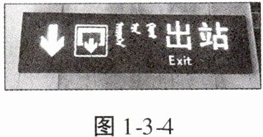 张老师乘高铁外出旅游,在途经车站看到了如图1-3-4所示文字,站台工作人员告诉她上面标注的是蒙古文。据此完成7—9题。