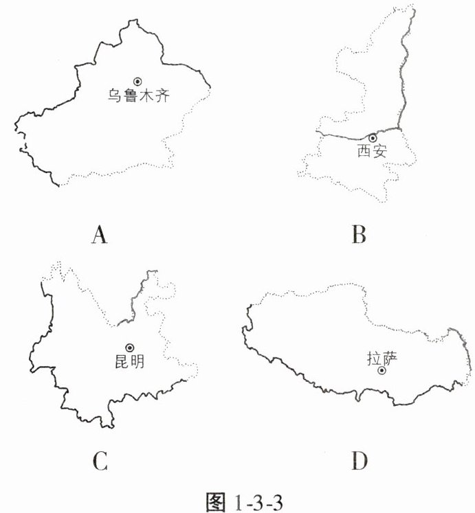 5. 藏族人口集中分布的省级行政区是图1-3-3中的(