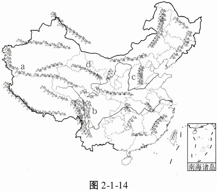 对昆仑山最早的记载是《山海经》,图 2 - 1 - 14 示意中国主要山脉的分布。据此完成 5、6 题。