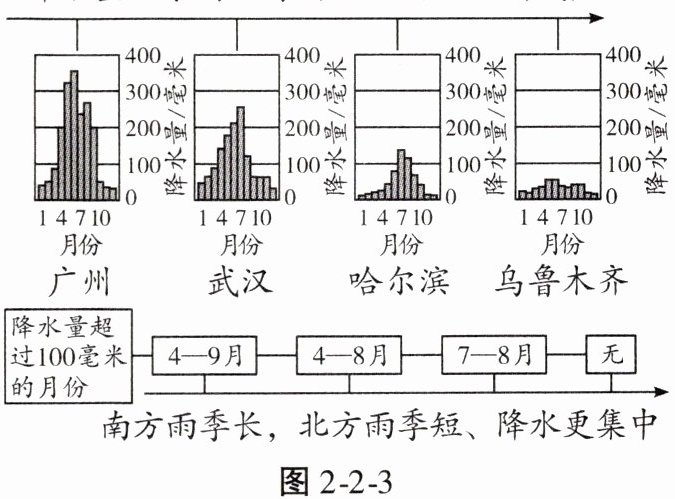 2. 我国降水时空差异大的原因(图 2-2-3)。