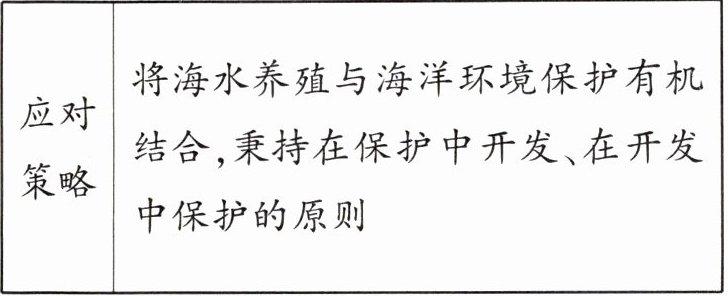 | 应对策略 | 将海水养殖与海洋环境保护有机结合,秉持在保护中开发、在开发中保护的原则。 |