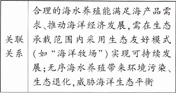 2. 海水养殖与海洋环境保护的关系(表 3 - 4 - 3)。