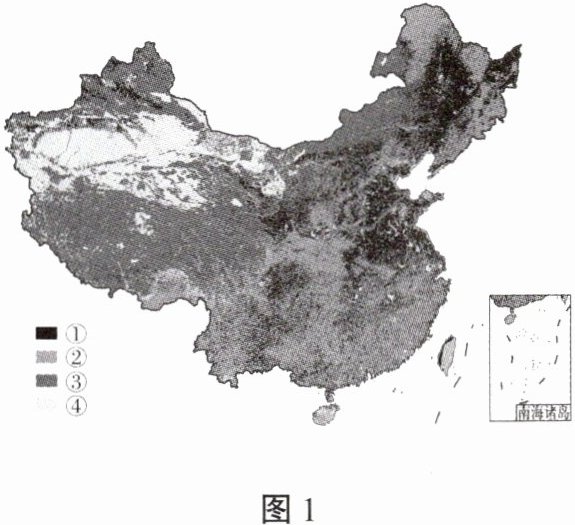 2025年6月25日是第35个全国土地日,活动主题是“节约集约用地 严守耕地红线”。读中国主要土地利用类型分布示意图(图1),完成1—3题。