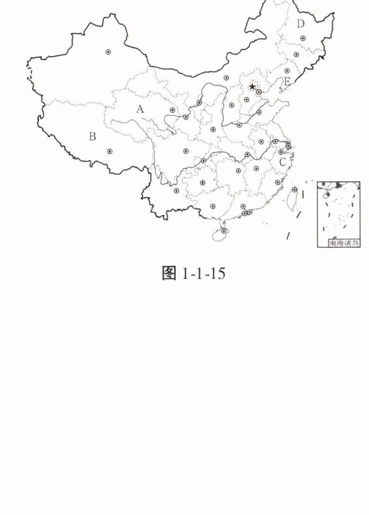 图 1 - 1 - 15 为中国的省级行政区图。根据下图及所学知识,明确省级行政区的名称、简称和行政中心。