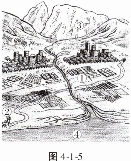 农业发展要因地制宜,就是把要发展的农业生产部门或农作物布局在适宜它发展或生长的地区,以充分利用当地自然条件的优势,图 4 - 1 - 5 是中国北方沿海某区域示意图,其中①为城市郊区、②为远离城市的平原地区、③为山地、④为海洋。