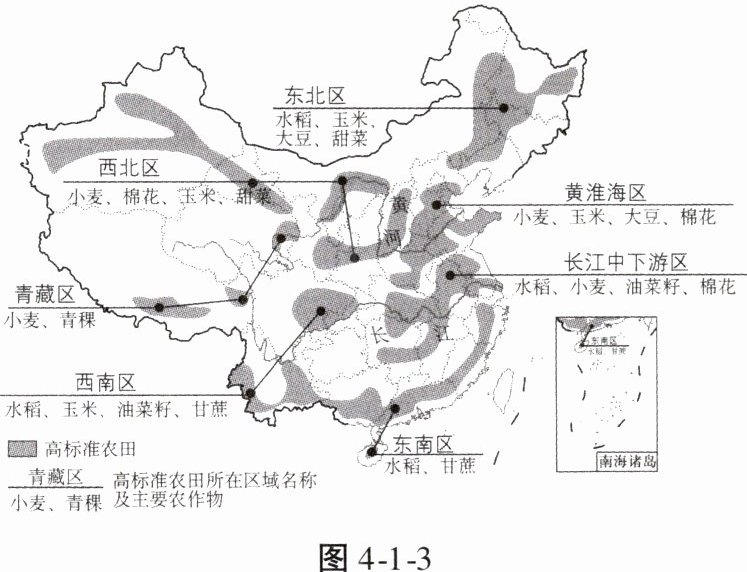 (1) 读图 4 - 1 - 3 可知,我国高标准农田主要分布在