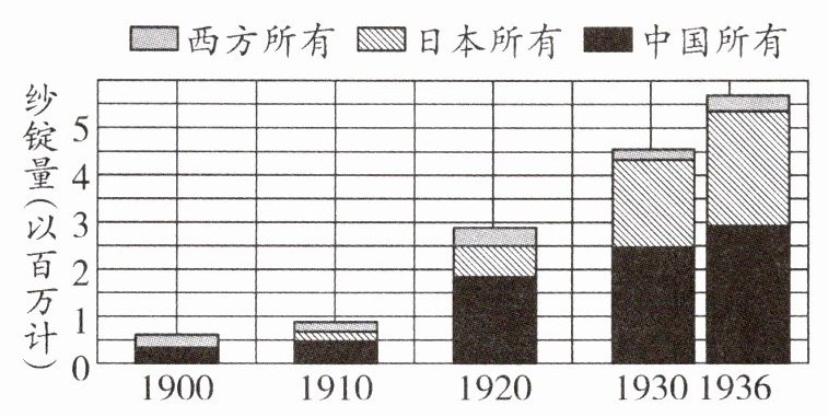 B 【解析】根据材料图示可知,在中国,西方所有的纱锭量虽有增加,但增加幅度较小,而日本所有的纱锭量迅速增加,甚至即将超过中国所有,这说明日本加快对中国的经济掠夺,B项正确。