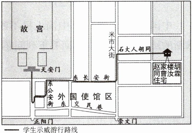 3.B 【解析】"曹汝霖宅之焚烧""章宗祥大受夷伤"反映了学生内惩国贼的举动,"青岛问题之争"反映了学生外争主权的举动,体现了学生是五四运动的先锋,B项正确。 4.A