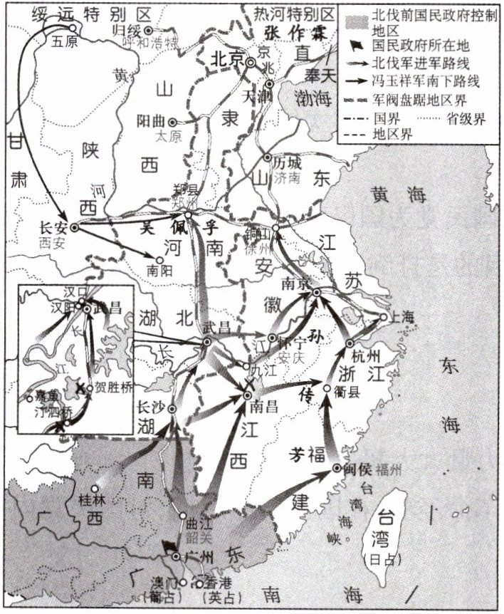 2. 下图是我国 20 世纪 20 年代北伐战争形势图,据此可知其作战特点是 ( )