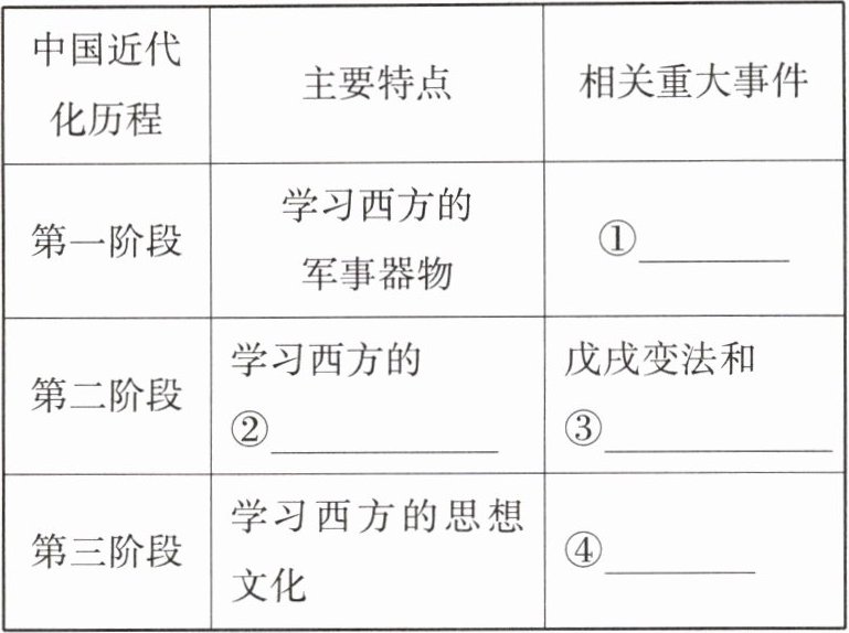 (1)①洋务运动 ②政治制度③辛亥革命 ④新文化运动