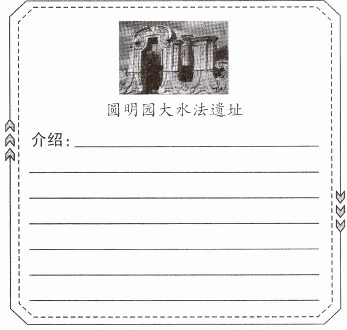 (3)学校开展景点知识卡片设计大赛,下面是小文同学为圆明园大水法遗址设计的知识卡片,请你帮他补充完整。(要求:围绕近代历史知识作答,史实正确,条理清楚)