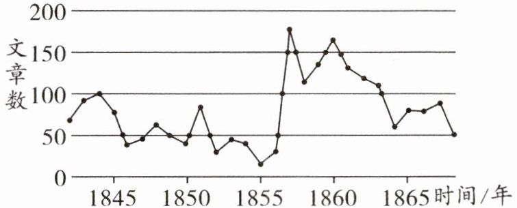 6. (跨学科·数学)下图所示为19世纪中期《伦敦新闻画报》对中国报道的文章数。图中数据峰值的出现是因为( )