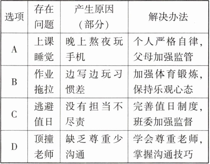 4. (2023·陕西中考) 为帮助同学们做更好的自己,小秦在班里做了调查研究,下面解决办法