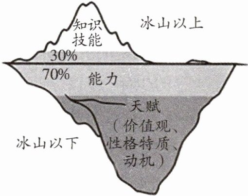 7. 心理学中通常使用冰山模型进行自我认知,将人的个体素质和能力划分为冰山以上部分和冰山以下部分。冰山以下部分是人内在的、难以测量的部分,不易因外界影响而改变,却起着关键作用。冰山模型说明 ( )