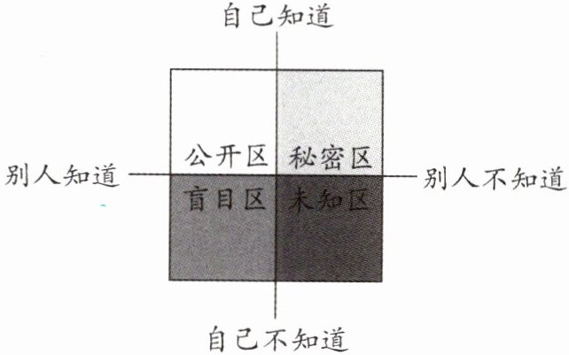 ①扩大“公开区”,和所有人成为朋友 ②保护“秘密区”,拒绝他人的关心 ③挖掘“未知区”,不断激发自己的潜能 ④缩小“盲目区”,理性对待他人的评价